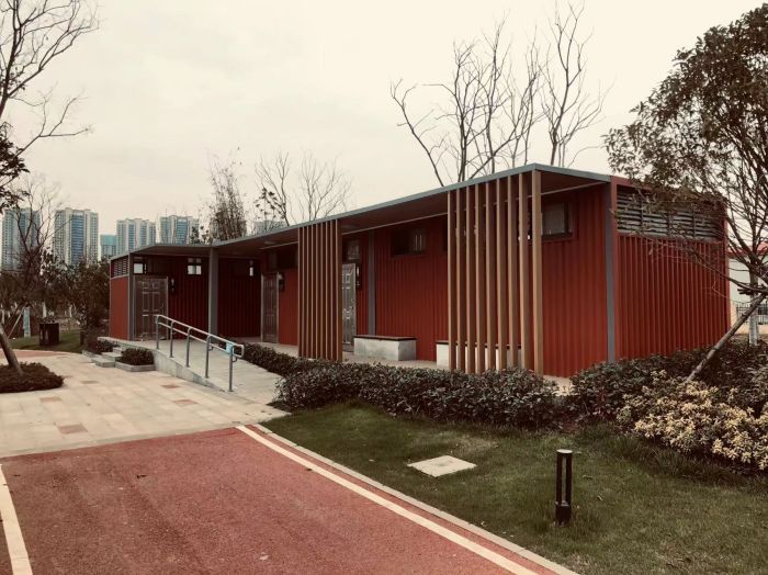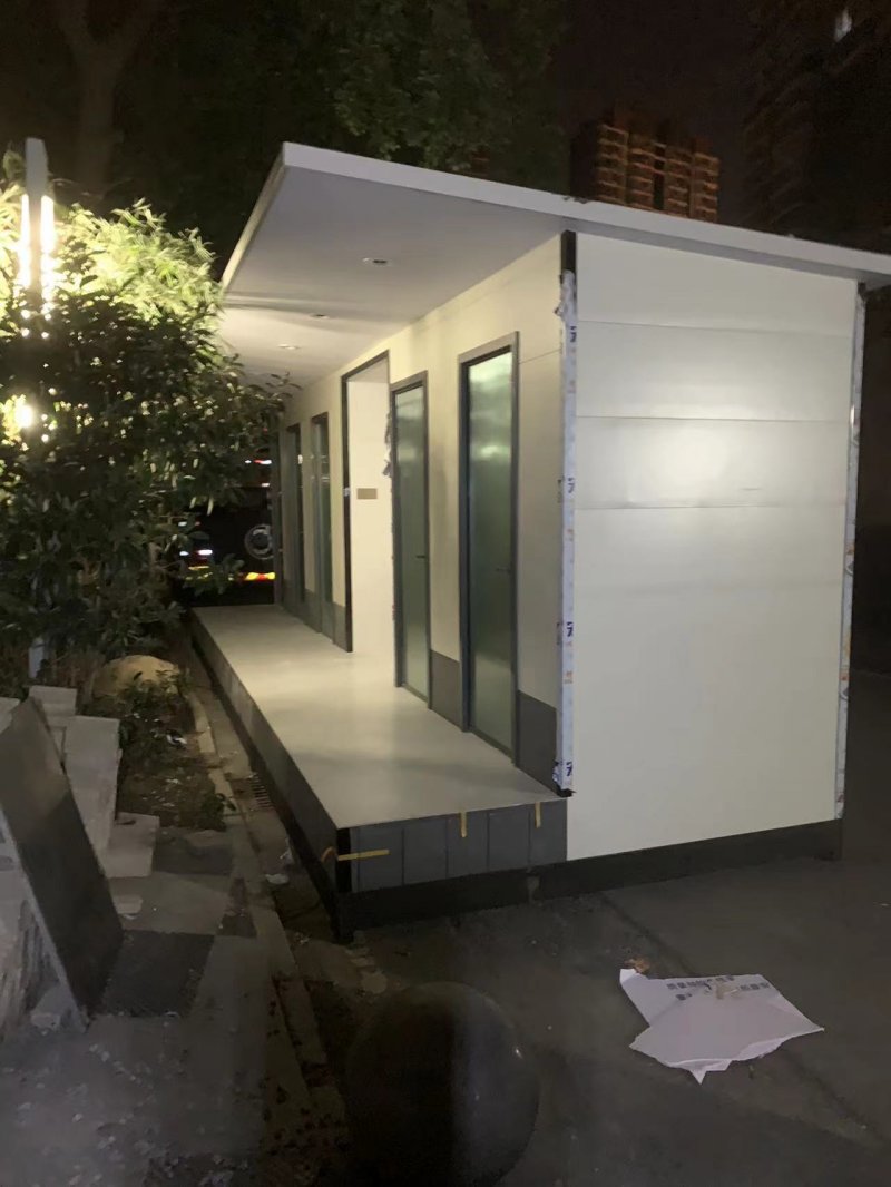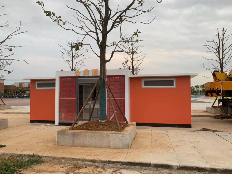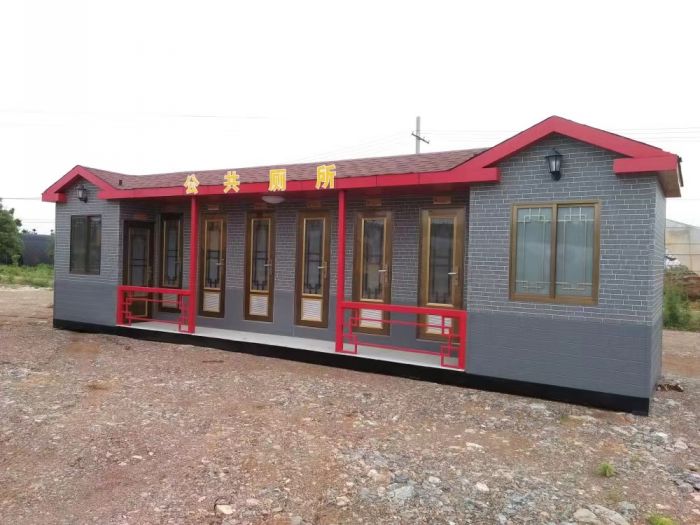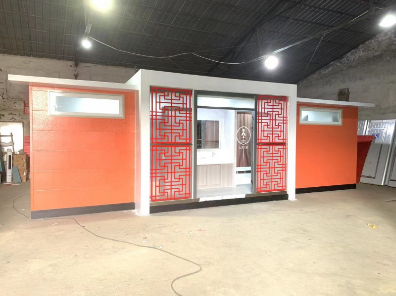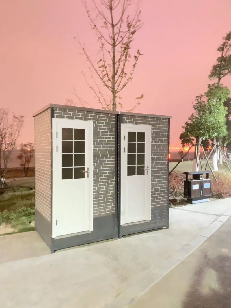 拼裝廁所;在廠里做好各個廁所部件,再到現(xiàn)場組裝在一齊,適合不易運輸?shù)拇笮蛶_@座箱式廁所,女廁5個蹲位內(nèi)配工具間,男廁2個蹲位+2小便斗,第三衛(wèi)生間由殘疾馬桶、助力洗手盆和兒童馬桶、兒童洗手盆外加嬰兒臺等設(shè)施。廁所前后有窗,通風(fēng)采光,前部走廊裝有屋檐,防雨防曬。此廁所位于公路綠道邊,整體大氣,功能齊全,造型美觀,是一道難得的靚麗景觀!